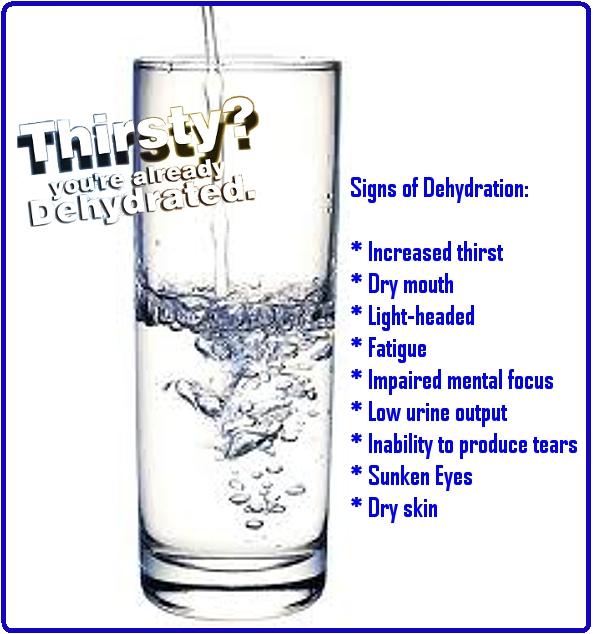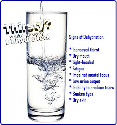 Dehydration - kekurangan air dalam badan; boleh menyebabkan kita keletihan, penat, tak bermaya dan mengantuk.