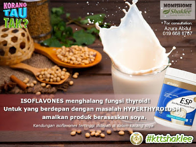 PhytoEstrogen (Estrogen hasilan tumbuhan terdapat paling banyak dalam produk soya) menghalang fungsi kelenjar thyroid.