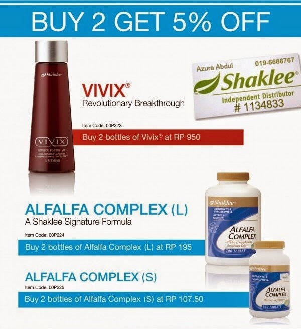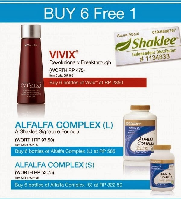 Sila hubungi saya, Azura Abdul 019-6686767 untuk maklumat lanjut tentang produk Shaklee. Konsultasi adalah percuma.