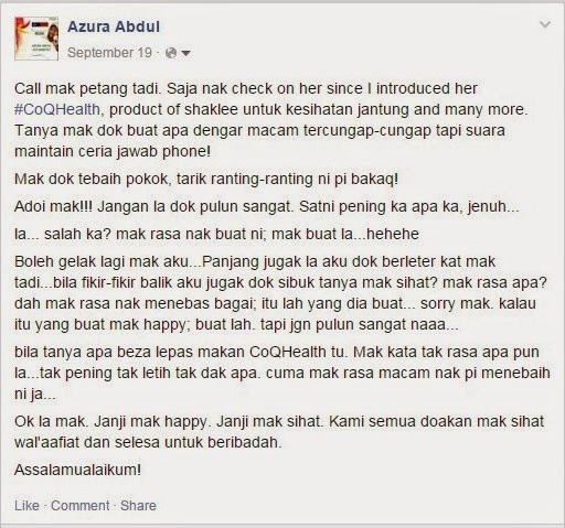 Kisahnye…: Part 3 - Mak dan CoQHealth CoQHeart kini CoQ-Trol Plus. Gabungan CoQ10 + Vitamin E + Resveratrol. November 9, 2014 Posted in CoQ-Trol, CoQHealth, Mak dan CoQHealth, Testimoni