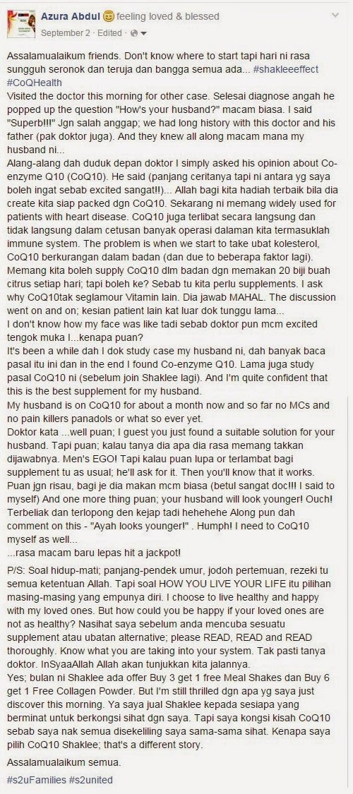 Kisahnye…: Part 4 - Abang dan CoQHealth Post Views: 134 November 9, 2014 Posted in Abang dan CoQHealth, CoQHealth, Testimoni