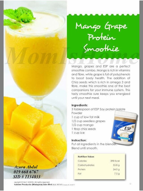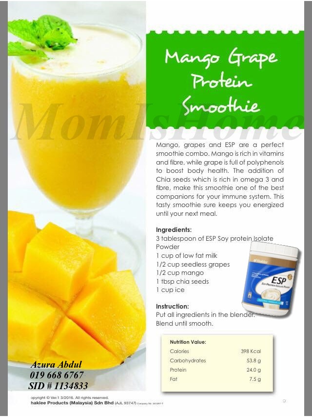 Mango-Grape Protein Smoothie ESP Shaklee kampungbet Post Views: 1,140 Mac 25, 2016 Posted in best breakfast, chia seeds, ESP, grape, Healthy Drink, mango, Resepi Shaklee, Shaklee Recipes