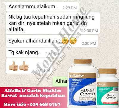 Untuk kes yang ini kaknjang cadangkan Alfalfa dan Garlic. Ringkas dan murah penggunaan dalam sebulan. Alhamdulillah masalah selesai…
