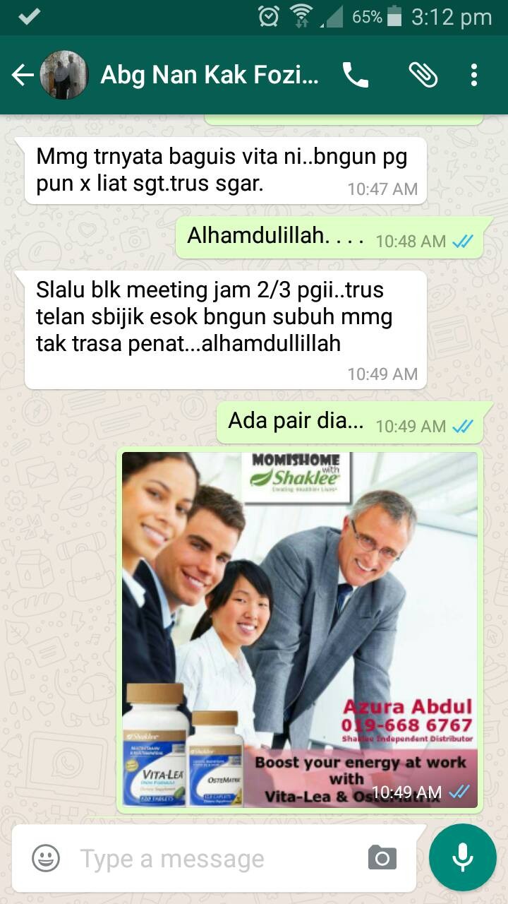 Since dia belum pernah makan sebarang supplement; Multivitamin VitaLea Shaklee is the best choice for him.