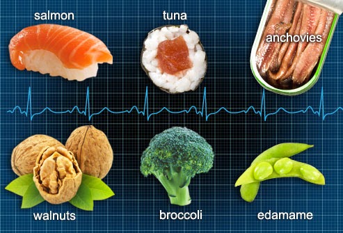 Omega-3s seem to have a stabilizing effect on the heart. They can lower heart rate and help prevent arrhythmias (abnormal heart rhythms). Several common sources of omega-3s are fish, walnuts, broccoli, and edamame (green soybeans that are often steamed and served in the pod).